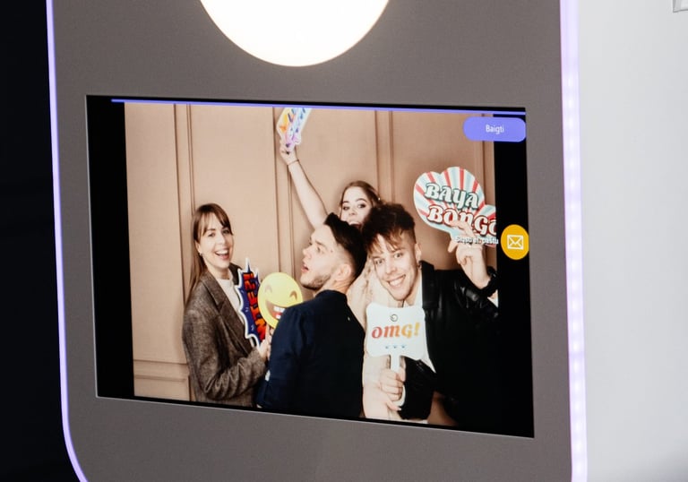 Būdele gali naudotis bet kokio amžiaus svečiai, nes procesas nėra sudėtingas. Tereikia prieiti prie foto būdelės, sekti nuorodas liečiamame ekrane ir atlikti kelis veiksmus.